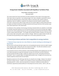 Discussion Draft - Energy Sector Subsidies Associated with Republican Tax Reform Plans
