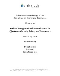 Earth Track Written Testimony on Federal Energy-Related Tax Policy and its Effects on Markets, Prices, and Consumers